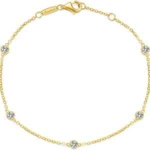 14k Solid Gold Diamond Solitaire Station Bracelets Series,DEF VS~VVS,Lab grown Diamond,No fading, No allergies,Lobster buckle