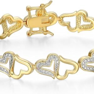 18k Gold Plated Bronze Diamond Accent Open Heart Bracelet for Women Trendy – Elegant Gold Bracelet with Diamond Accents, Adjustable 7.25 Inch Design