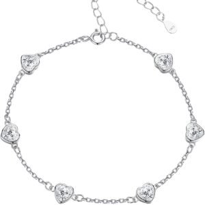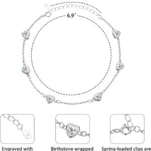 925 Sterling Silver Birthstone Bracelet 12 Color Options Diamond Heart Bracelet Jewelry Gift for Women