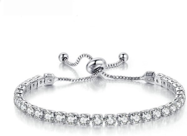Silver Bracele, Tennis Bracelets for Women White Gold Plated Diamond Classic Adjustable Slider Bracelet Silver Fashion Jewelry Wedding Gift for Women Gifts Women