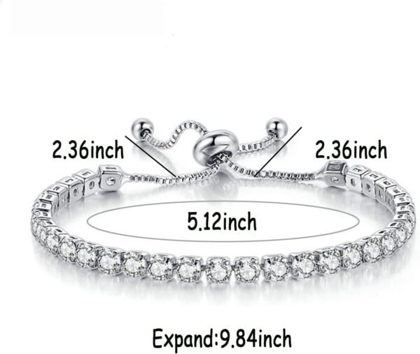 Silver Bracele, Tennis Bracelets for Women White Gold Plated Diamond Classic Adjustable Slider Bracelet Silver Fashion Jewelry Wedding Gift for Women Gifts Women