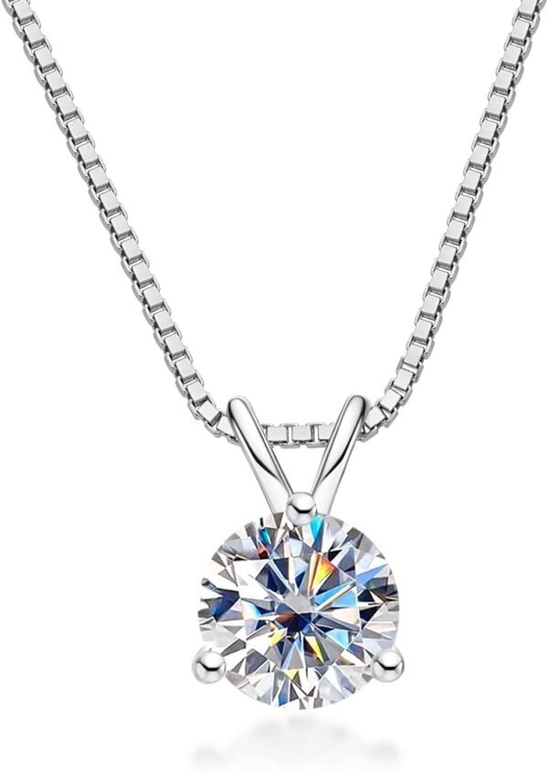 Moissanite Pendant Necklace 1CT D Color Round Cut 925 Sterling Silver Necklace for Women with Certificate