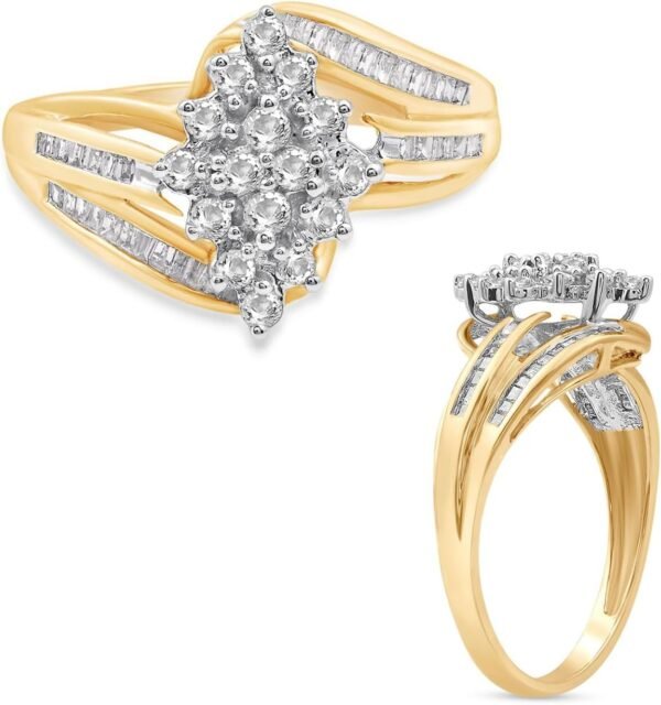 10K Yellow Gold 1/2 Natural White Round & Baguette Diamond Cluster Ring for Women | Dainty Fine Jewelry with Gift Box