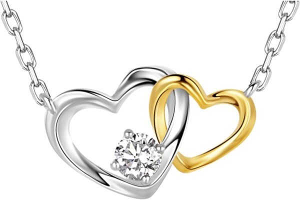 S925 Sterling Silver Lab Grown Diamond Necklace for Women,Double Heart Pendant Necklace,Jewelry Gift for Women,Anniversary,Valentine’s Day,Mothers Day,Birthday Gift for Her